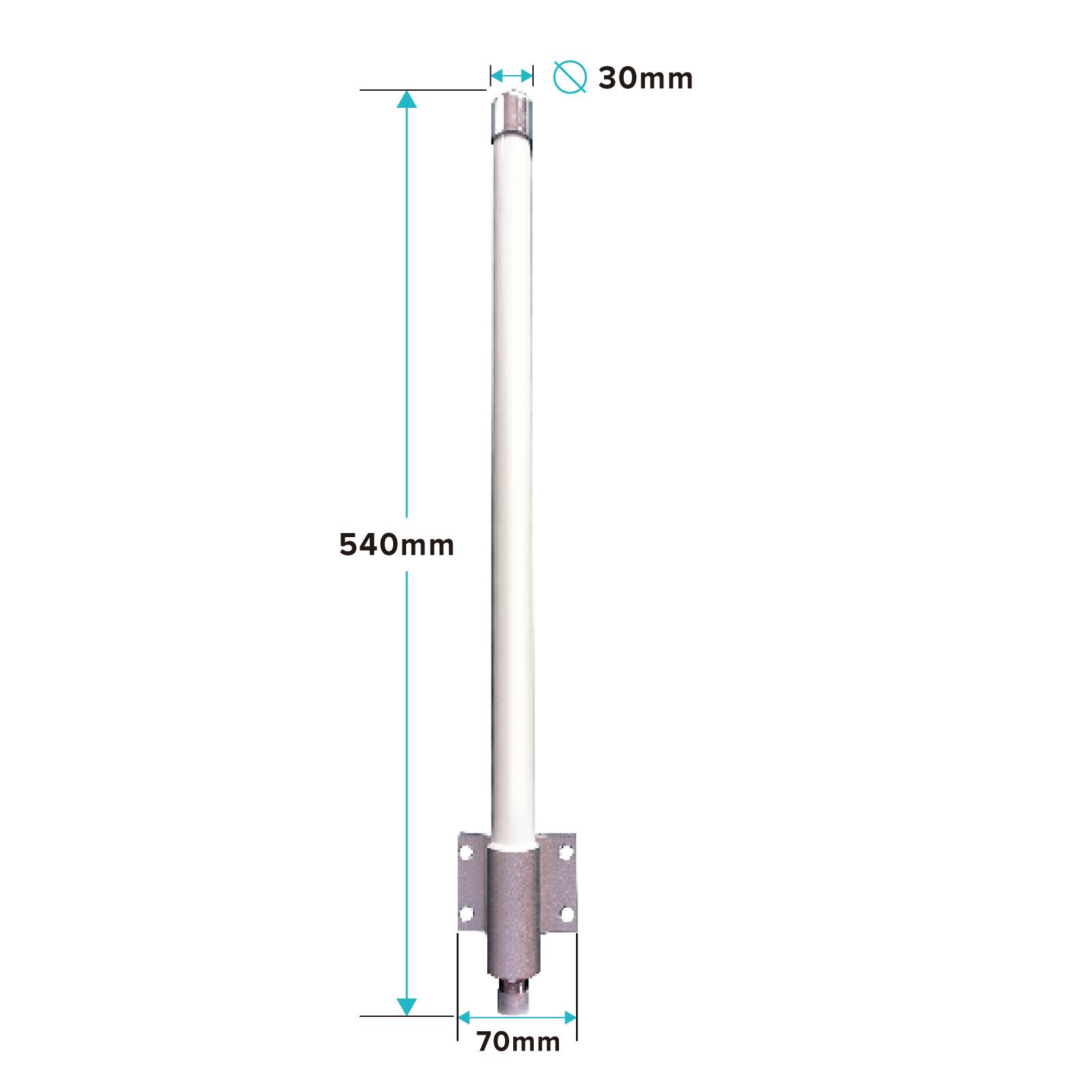 The ANTOM91504004001 Fiberglass antenna is a 900-930 MHz omni-directional antenna. This antenna is housed in a UV-protected, rugged fiberglass enclosure to provide maximum protection against extreme weather conditions. It features an N female connector and sleeve that will not oxidize. Included is a heavy-duty, stainless steel mounting bracket for pole mounting.